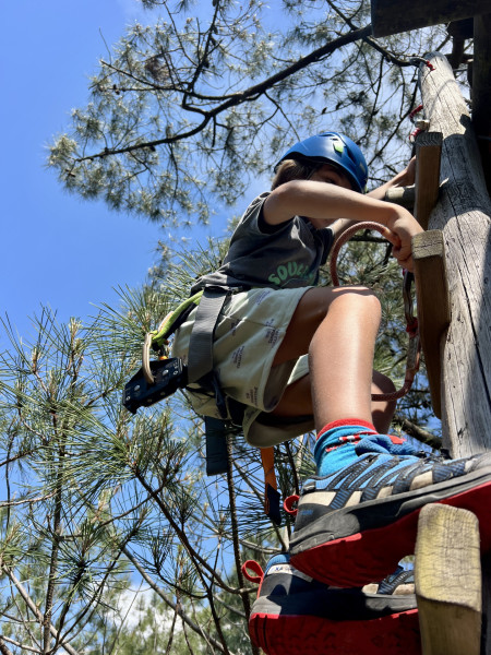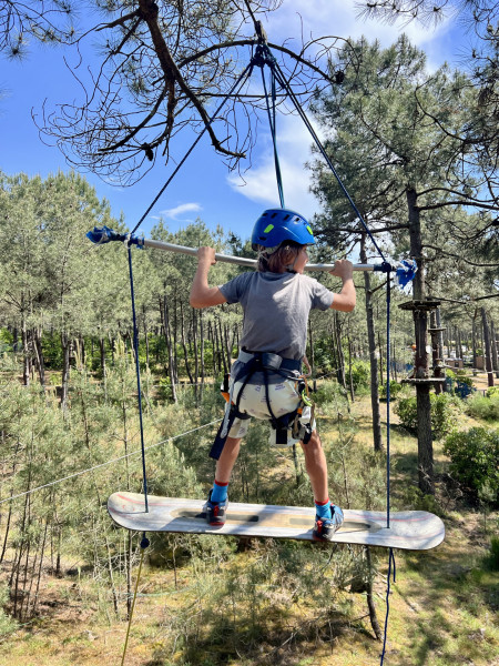 Depuis le camping, on accède à pied au parc accrobranche « Le peuple des cimes ». Il y a des parcours adaptés aux différents âges, y compris une zone pour les enfants à partir de 2 ans et demi ! Ici on se déplace d’arbres en arbre sur des grosses bouées, des tyroliennes, un snowboard et même un surf ! Sensations garanties pour toute la famille !